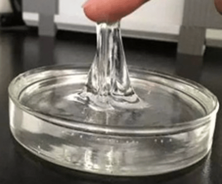 The two-component colourless, transparent liquid can be vulcanised into a gel-like elastomer at a certain temperature after being evenly mixed in a ratio of 1:1. It is self-adhesive, self-healing, colourless, tasteless, environmentally friendly, and non-toxic. It has passed the food-level certification and has no harm in direct contact with the human body. It can be used for a long time at -50–250 °C with stable performance.